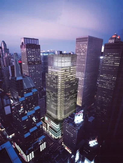 745 Seventh Avenue was originally designed for Morgan Stanley as a ‘build-to-suit’ 1.1 million-square-foot commercial office building with 14,000 square-foot adjacent public ‘pocket-park’ located partially within the Time Square Zoning District between 49th and 50th Streets. Conceived as a sister building to Morgan Stanley’s Headquarters at 1585 Broadway, the building was sold to Lehman Brothers after it was completed in the fall of 2001. The project was co-developed by Morgan Stanley and the Rockefeller Group that holds the lease on the 65,000 square-foot property.